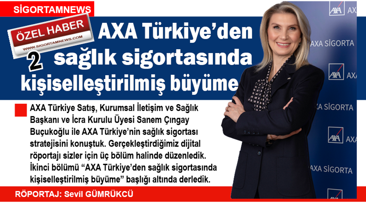 AXA Türkiye Satış, Kurumsal İletişim ve Sağlık Başkanı ve İcra Kurulu Üyesi Sanem Çıngay Buçukoğlu ile AXA Türkiye’nin sağlık sigortası stratejisini konuştuk. Gerçekleştirdiğimiz dijital röportajı sizler için üç bölüm halinde düzenledik. İkinci bölümü “AXA Türkiye’den sağlık sigortasında kişiselleştirilmiş büyüme” başlığı altında derledik.
