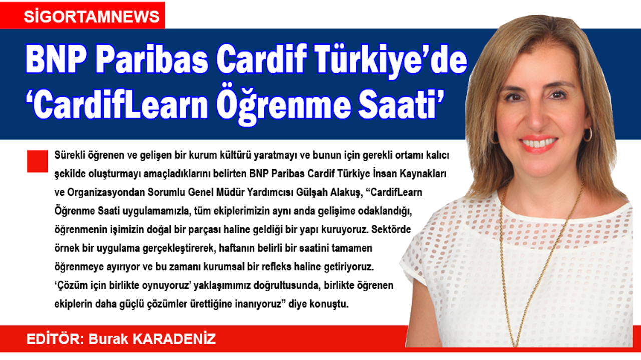 Sürekli öğrenen ve gelişen bir kurum kültürü yaratmayı ve bunun için gerekli ortamı kalıcı şekilde oluşturmayı amaçladıklarını belirten BNP Paribas Cardif Türkiye İnsan Kaynakları ve Organizasyondan Sorumlu Genel Müdür Yardımcısı Gülşah Alakuş, “CardifLearn Öğrenme Saati uygulamamızla, tüm ekiplerimizin aynı anda gelişime odaklandığı, öğrenmenin işimizin doğal bir parçası haline geldiği bir yapı kuruyoruz. Sektörde örnek bir uygulama gerçekleştirerek, haftanın belirli bir saatini tamamen öğrenmeye ayırıyor ve bu zamanı kurumsal bir refleks haline getiriyoruz. ‘Çözüm için birlikte oynuyoruz’ yaklaşımımız doğrultusunda, birlikte öğrenen ekiplerin daha güçlü çözümler ürettiğine inanıyoruz” diye konuştu.