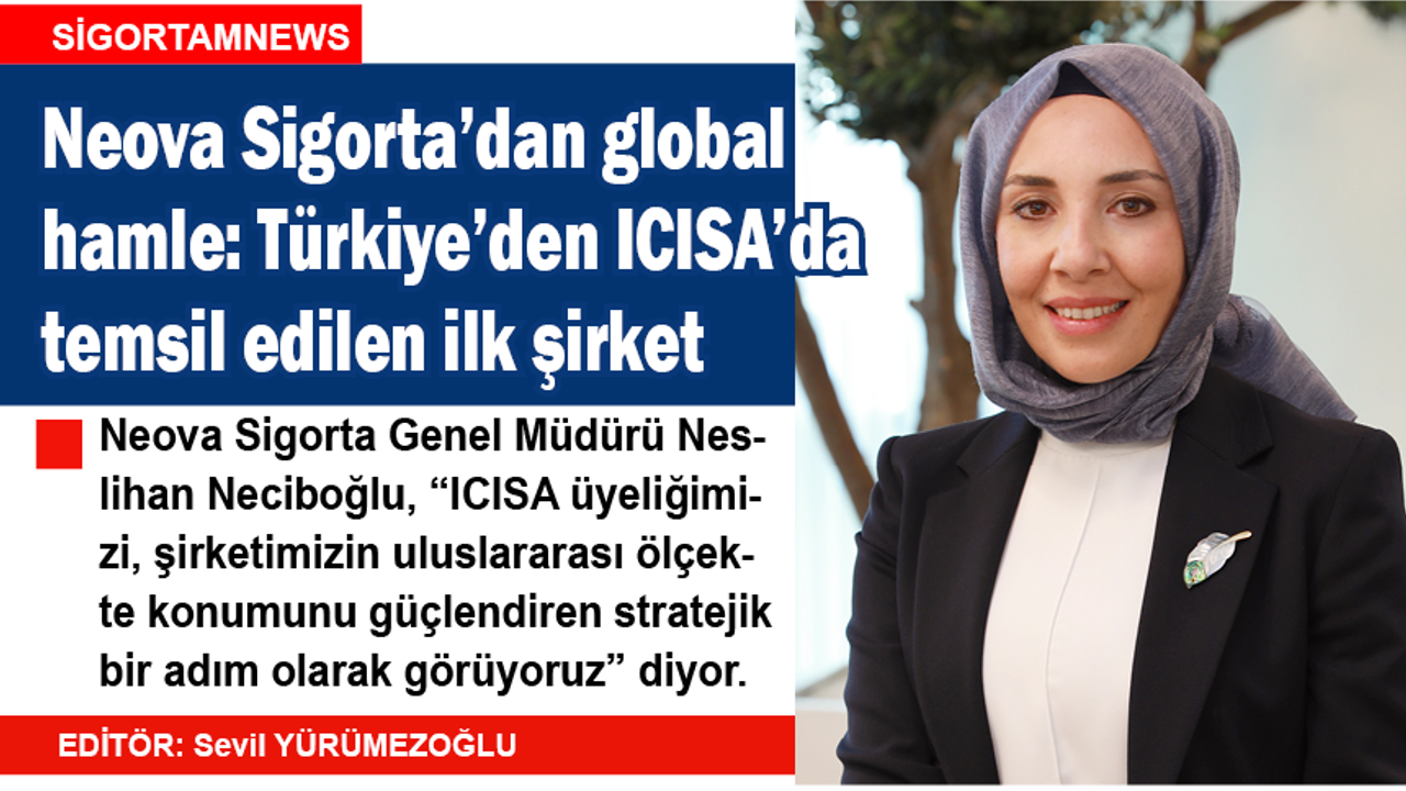 Kredi sigortası ve kefalet alanında faaliyet gösteren uluslararası şirketleri bir araya getiren International Credit Insurance & Surety Association (ICISA) bünyesine Neova Sigorta da katıldı. Bu gelişmeyle birlikte Neova Sigorta, ICISA bünyesinde Türkiye’yi temsil eden ilk kurum olarak konumlandı.