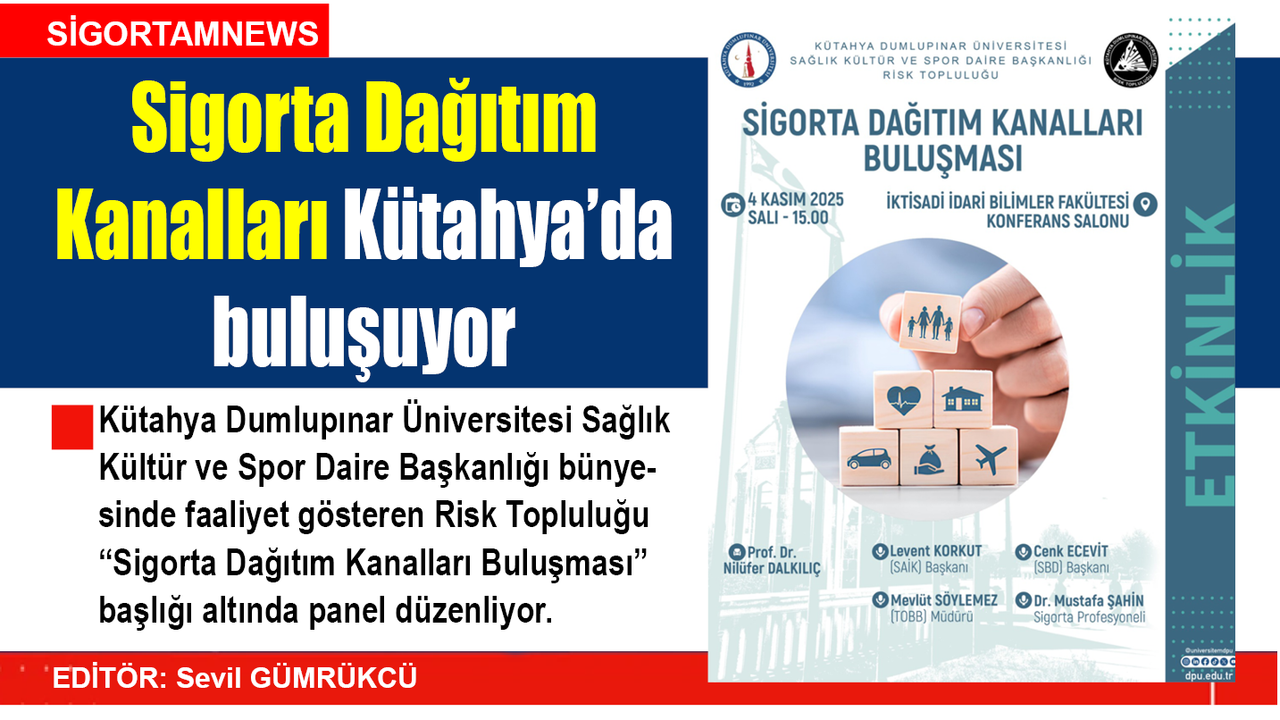 Kütahya Dumlupınar Üniversitesi Sağlık Kültür ve Spor Daire Başkanlığı bünyesinde faaliyet gösteren Risk Topluluğu “Sigorta Dağıtım Kanalları Buluşması” başlığı altında panel düzenliyor. Panelin moderatörlüğünü Kütahya Dumlupınar Üniversitesi Uygulamalı Bilimler Fakültesi Sigortacılık ve Risk Yönetimi Bölüm Başkanı Dumlupınar Üniversitesi Prof. Dr. Nilüfer Dalkılıç yapacak.