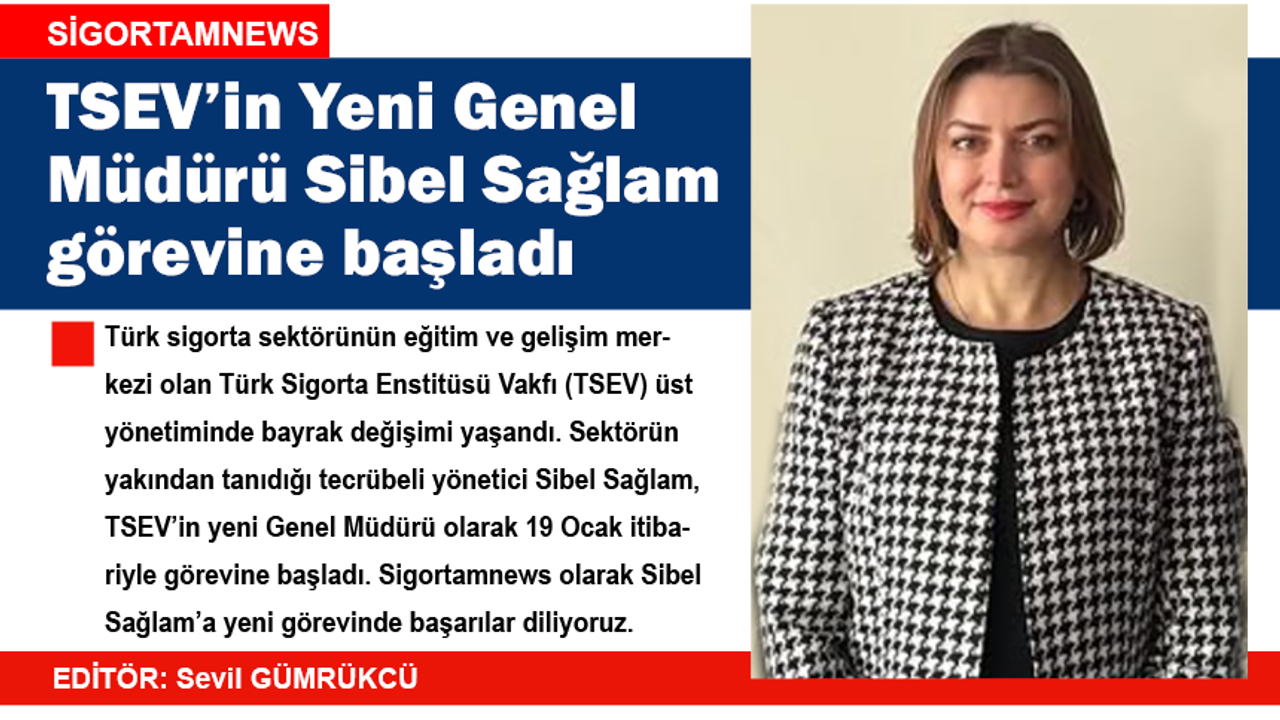 Türk sigorta sektörünün eğitim ve gelişim merkezi olan Türk Sigorta Enstitüsü Vakfı (TSEV) üst yönetiminde bayrak değişimi yaşandı. Sektörün yakından tanıdığı tecrübeli yönetici Sibel Sağlam, TSEV’in yeni Genel Müdürü olarak 19 Ocak itibariyle görevine başladı. Sigortamnews olarak Sibel Sağlam’a yeni görevinde başarılar diliyoruz.