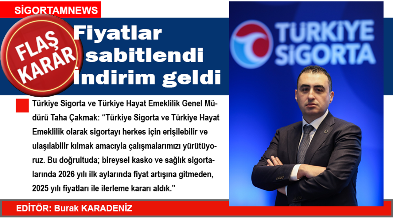 “Türkiye Sigorta ve Türkiye Hayat Emeklilik olarak sigortayı herkes için erişilebilir ve ulaşılabilir kılmak amacıyla çalışmalarımızı yürütüyoruz. Bu doğrultuda; bireysel kasko ve sağlık sigortalarında 2026 yılı ilk aylarında fiyat artışına gitmeden, 2025 yılı fiyatları ile ilerleme kararı aldık."