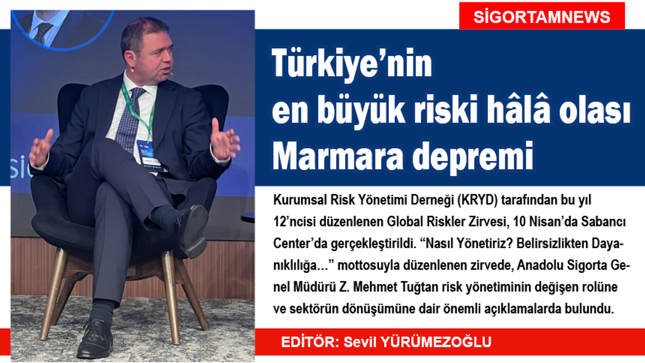 Kurumsal Risk Yönetimi Derneği (KRYD) tarafından bu yıl 12’ncisi düzenlenen Global Riskler Zirvesi, 10 Nisan’da Sabancı Center’da gerçekleştirildi. “Nasıl Yönetiriz? Belirsizlikten Dayanıklılığa…” mottosuyla düzenlenen zirvede, Anadolu Sigorta Genel Müdürü Z. Mehmet Tuğtan risk yönetiminin değişen rolüne ve sektörün dönüşümüne dair önemli açıklamalarda bulundu.